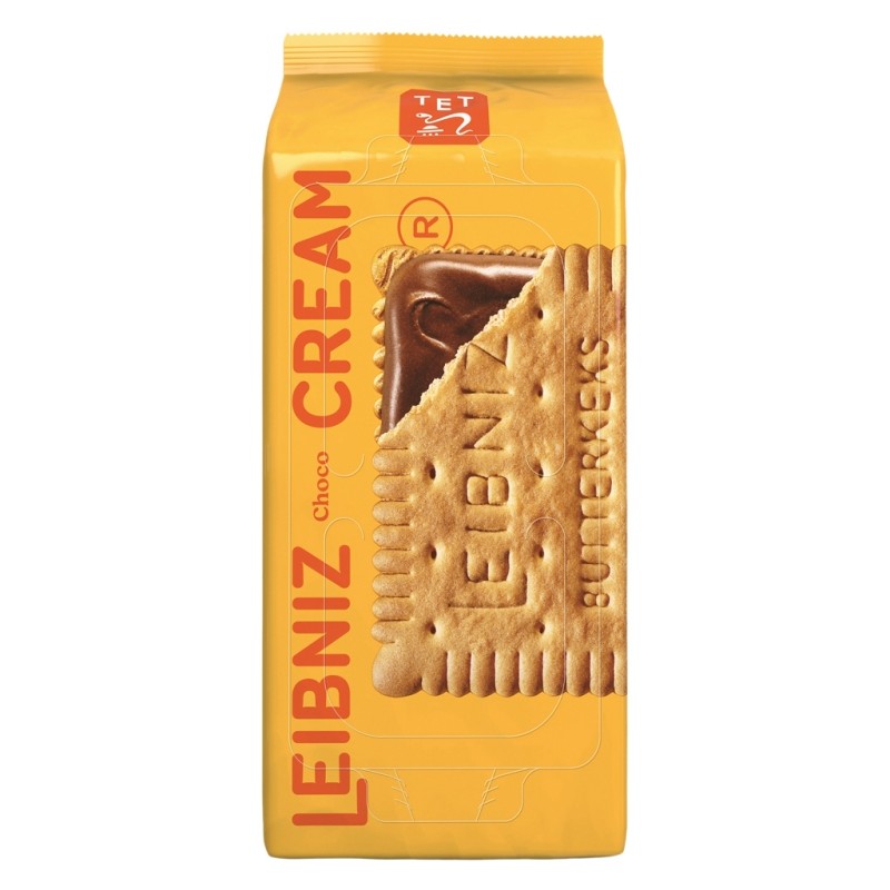 Biscuiti cu unt si umplutura crema de ciocolata (47%) Leibniz Choco Cream, crocanti la exterior si cremosi la interior. Leibniz Choco Cream poate fi sandwich-ul dulce si crocant atunci cand ai nevoie sa te incarci cu energie sau poate fi gustarea cremoasa si savuroasa atunci cand esti la servici, la scoala sau te relaxezi. O alegere perfecta oriunde te-ai afla si orice activitate ai face. Ambalajul resigilabil asigura prospetimea biscuitilor pentru mai tarziu.